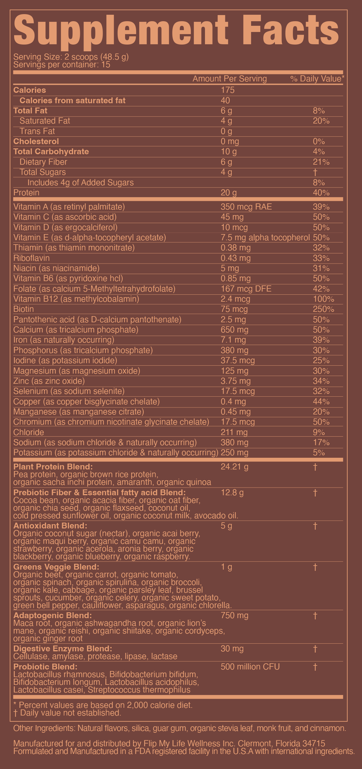 Feel better, fast with one shake a day. FLIP 7 is an unmatched, all-in-one meal replacement SUPERFOOD powder with the most nutrient rich balance of health extending blends formulated to support whole body and mind wellness. The vegan, plant based formula is made with proprietary doctor-tested blends and clean ingredients that work synergistically to enhance metabolism and provide all the super greens, adaptogens, prebiotics, probiotics, digestive enzymes, vitamins and minerals plus 20 grams of protein in each serving without bloat you get from other powders. No Bloat! 100% Delicious. Smooth, creamy texture.